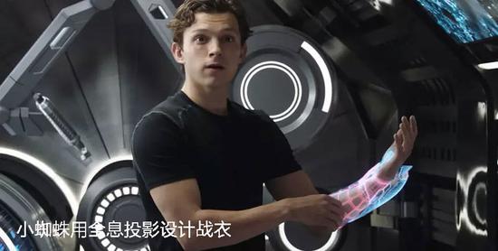 钢铁侠对全息投影的喜爱似乎也影响到了小蜘蛛,在最新一部影片《蜘蛛侠:英雄远征》中,小蜘蛛也学会了用全息技术设计战衣。