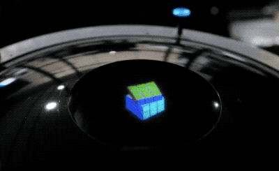 遗憾的是,要在空气中投射出三维图像的难度非常大,目前仍处于实验室研究阶段,2015 年韩国一组研究人员利用高性能彩色激光制造出世界首例 360 度彩色全息图,虽然演示影像只是一个彩色魔方,但已动用了 16 个不同领域的科研人员花了 2 年时间,耗资不菲。