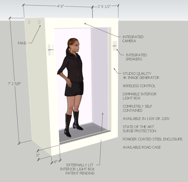 根据官网介绍,PORTL是世界上第一个也是唯一一个“单人全息图像生成器”(single passenger HOLOPORTATION MACHINE),它允许任何人在任何地方实时进行全息图像的投射和传播,接收方能够以4K分辨率的格式和对方进行观看、聆听和互动。