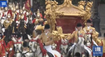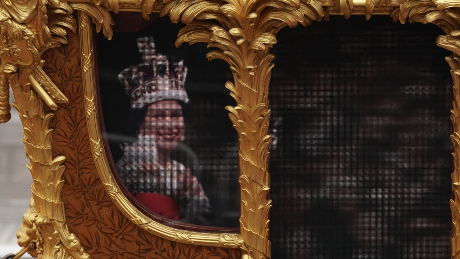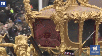 在5日耗资1500万英镑的伦敦街头游行中,英女王仍然缺席。不过,据英国天空新闻报道,英女王的全息影像却出人意料地出现在了“王室金马车”(Gold State Coach)内,在马背上的卫兵护卫下,让人感觉她就在马车里。