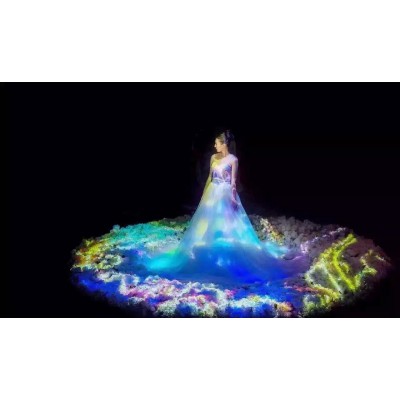 3D全息投影,就是运用高科技的全息影像技术做出的逼真舞台立体投影效果,让人体验身临其境般的梦幻感受,营造美轮美奂的光影互动景象。这种技术常常在大型晚会中使用,但近来也走进了普通百姓的婚礼宴会、酒吧派对等等。