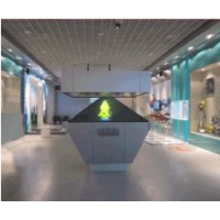 柜体时尚美观,有科技感;顶端四面透明,真正的空间成像;色彩鲜艳,对比度,清晰度高;有空间感,感,形成空中幻象;中间可结合实物,实现影像与实物的结合;也可配加触摸屏实现与观众的互动;