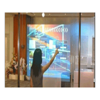 通过背投形式将虚拟影像叠加在特制的玻璃或者其他透明物体上,监控设备将对人的手指接触点进行监控与感知,并将获得的数据传输回电脑处理,