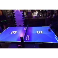 下面这个展项也很有趣,将是一场乒乓球的革命,在传统玩法的基础上增加了游戏和社交的成分,游戏互动效果被投影到乒乓桌上,乒乓球的运动轨迹带着动画效果并同步被记录得分。