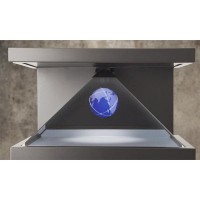 360全息成像也被称之为三维全息影像、全息三维成像,它是由透明材料制成的四面锥体,观众的视线能从任何一面穿透它,通过表面镜射和反射,观众能从锥形空间里看到自由飘浮的影像和图形。四个视频发射器将光信号发射到这个锥体中的特殊棱镜上,汇集到一起后形成具有真实维度空间的立体影像。